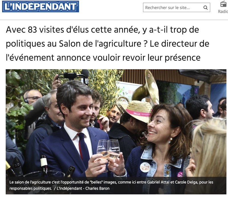 訪問者数は、昨年に比べ、2%減の603652人と発表された。やはり開会当初の混乱が尾を引いたかたちになったという。そして、マクロン大統領を始め、アタル首相などの政府関係者はもちろん、極右政党のバルデラ氏など、政治家の訪問も多く、政治家の広報戦略のツールとなってしまっているこのイベントについては、さすがに開催者側も問題視しており、今後はこのイベントが政治的になりすぎないようにしたいという。