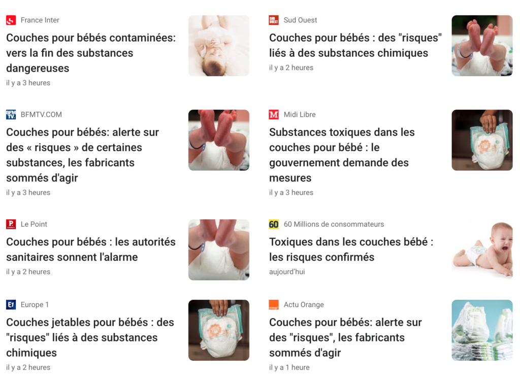 本日、メーカーと販売者が経済省(Ministère de l’Economi)に呼ばれることになっている。どのメーカーのどのおむつが対象になっているかは発表されていないが、メーカーと販売者は15日以内に改善策を出すように要求されている。