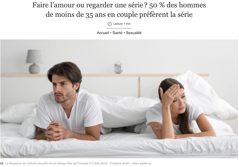 この調査について、フランスのメディアでは様々な専門家などがコメントを繰り広げている。スマホのせいだとか、サブスクのテレビドラマがあるからだとか。そして時代の変化で、女性がはっきりといやなときは嫌というようになったとか、性に重きを置かなくなった時代になっているなど。