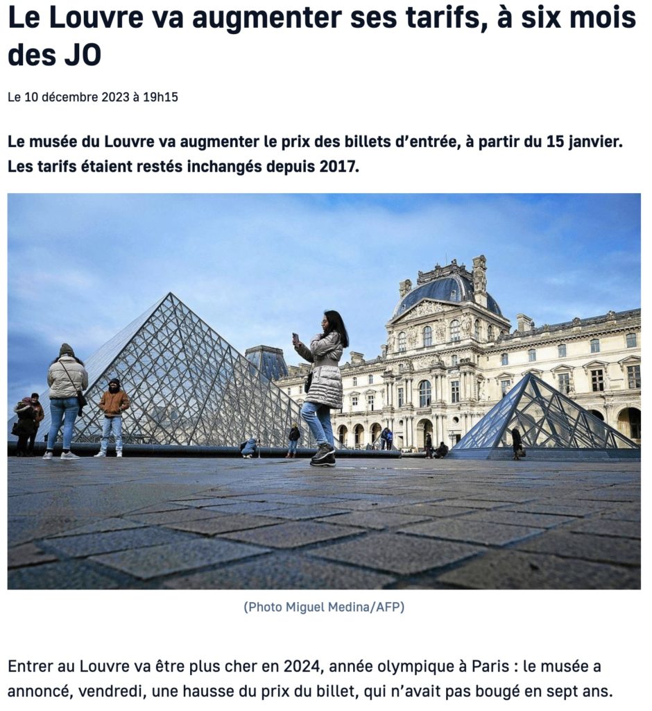 「オリンピック6ヶ月前にして、ルーブル美術館は料金を値上げ」