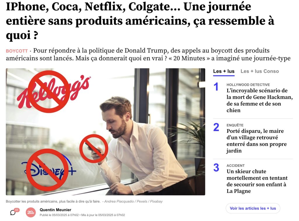 アメリカの追加関税措置で、フランスで話題になってきているのが、こうしたアメリカに抗議するための「アメリカ製品のボイコット」。カナダや北欧などでは、かなり大きくなりつつあるが、フランスでも一部の消費者から呼びかけが始まっている。