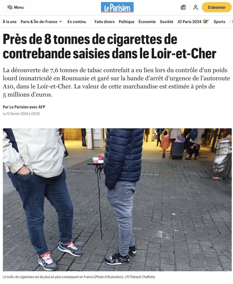 ちなみに2022年、フランスの税関では実に650トンの密輸タバコが押収されたといい、一年で60%の上昇だったという。