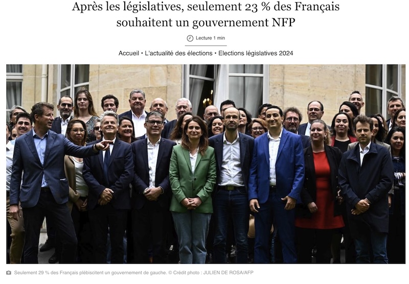 「総選挙後、左派連合NFP内閣を望んでいるのは、フランス国民の23%だけ」
