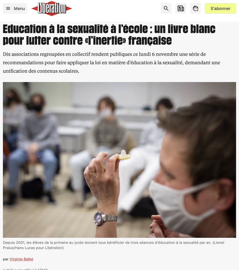 しかし、11月6日月曜日に、民間の10の団体が発表したところによると、実際の現場では、フランスの性教育は充分でないどころか、まったく行われておらず、ここ数年、不定期に様々な団体が指摘しているように、小学校から高校まで、性教育の授業がちゃんと受けられていないという。