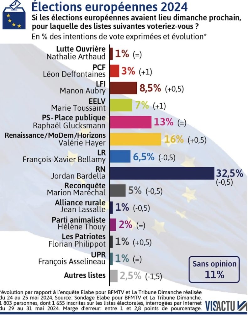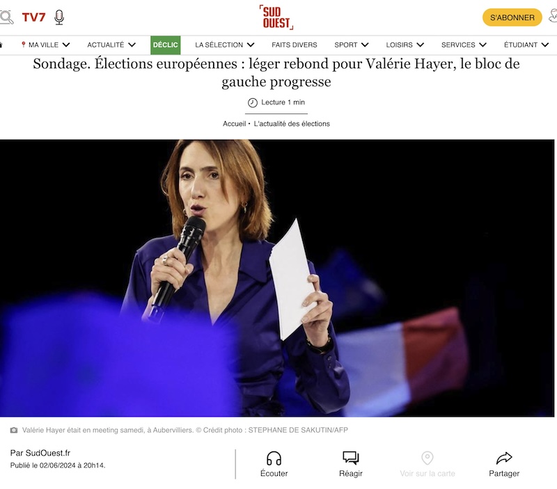 「ヨーロッパ議員選挙、世論調査:ヴァレリー・エイエール、左派は微増」