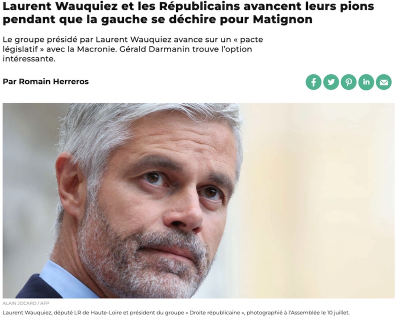 「ローラン・ヴォキエズと共和党員たちは、左派が首相官邸問題で内輪もめしている間に、駒を進める」
