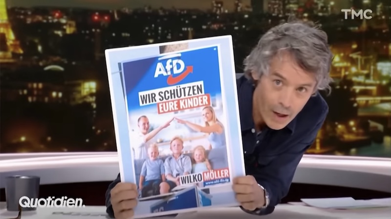 ドイツの極右政党のポスターを紹介する情報番組Quotidienから。