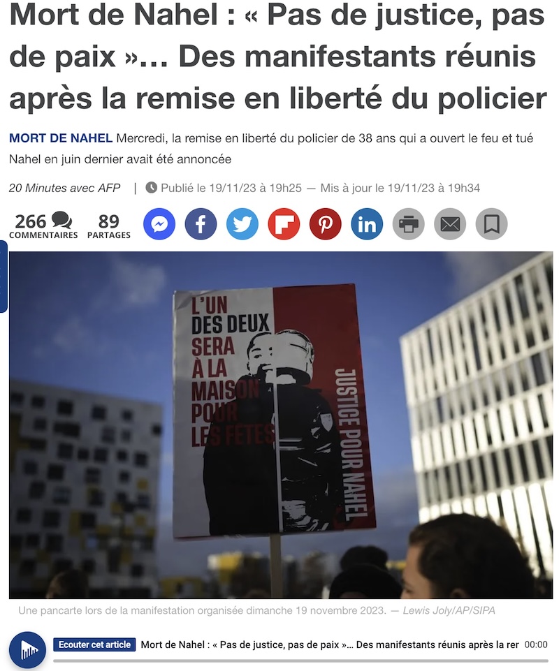 「ナヘルの死:“裁きなしで、平和はない”…。警察官の釈放の後、デモに集まった人たち」