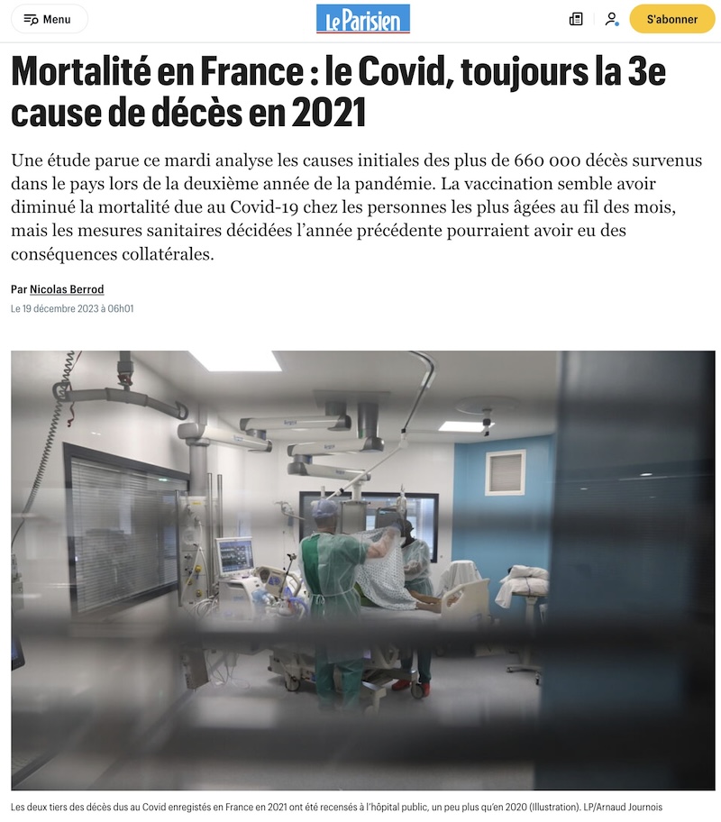 本日発表されたところによると、2021年、新型コロナウィルスのパンデミックの2年目、フランス人の死因の第三位がコロナウィルスだったという。