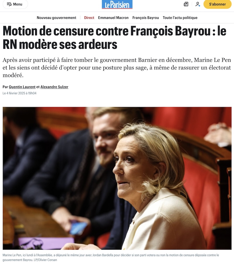 「フランソワ・バイルーへの不信任決議:極右政党RNは牙を画す」