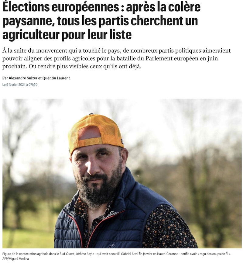 「ヨーロッパ議員選挙:農民の怒りのあと、全ての政党は候補者リストに農業従事者を入れようとしている」