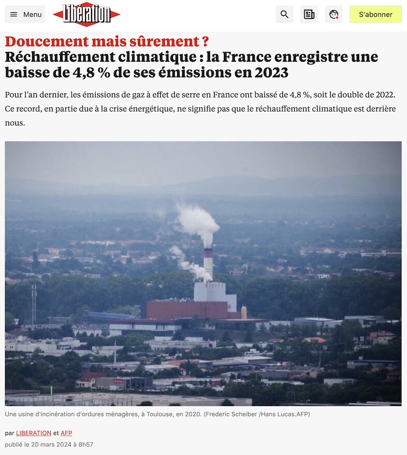 「ゆっくりだが、確実に?。地球温暖化:2023年、フランスは4.8%の排出量の減少」