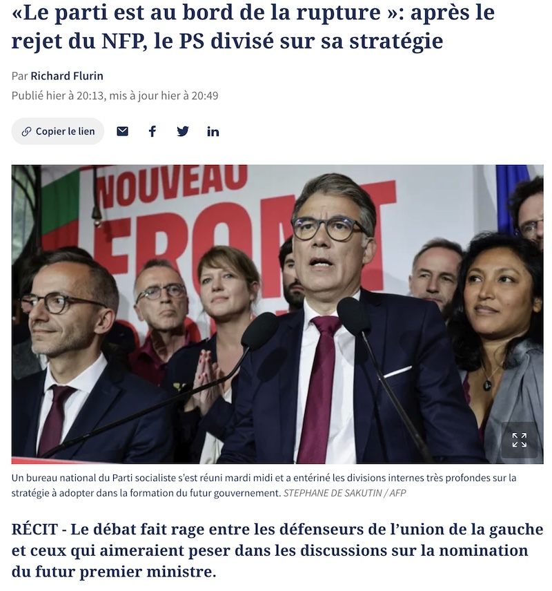 もちろん、フランスのメディアもそれをいわば面白がって取り上げているという面もあるが、やはり社会党の中には極左政党LFIを毛嫌いするものもいたり、大統領派との協力にも前向きなものもいたり、さらには、現党首のリーダーシップに異を唱えるコメントも漏れ始めている。