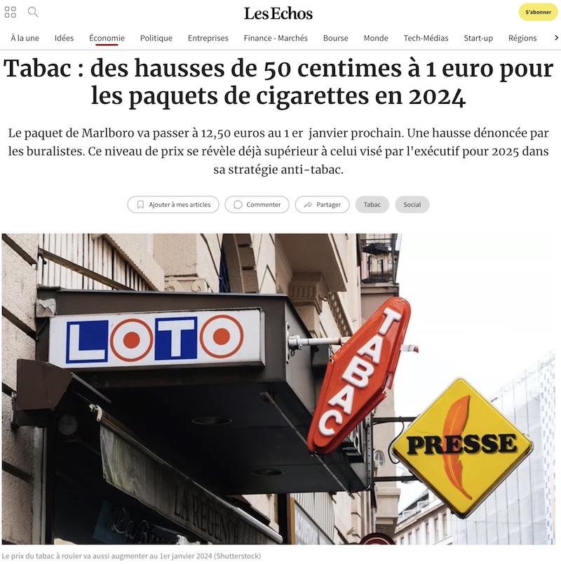 「タバコ:2024年、タバコ一箱の価格は50サンチームから1ユーロの値上げ」