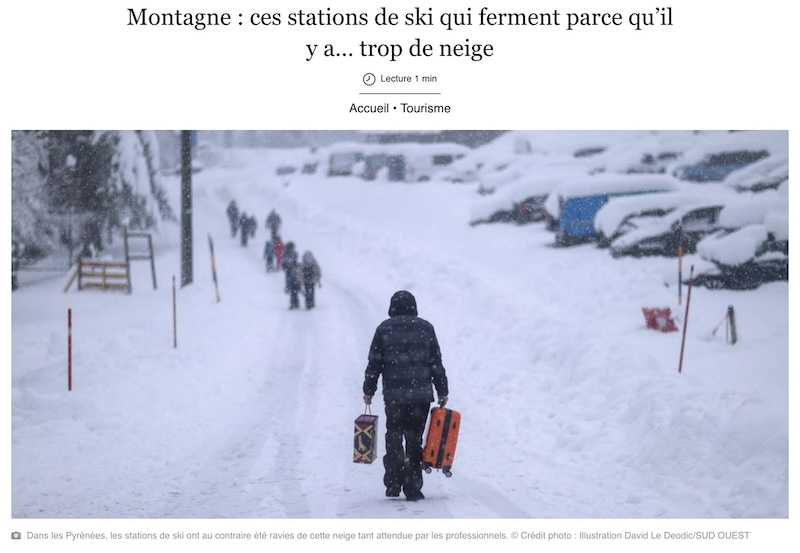 日本でも三月に入ったのに寒波に襲われたが、この週末のフランスも同じく、山間部では突然の雪。しかも大量に降ったために、スキー場にアクセスする道路が通れなくなるなどして、スキー場も閉鎖となった。