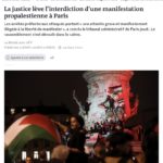 昨日、パリの行政裁判所は、県警による親パレスチナデモの禁止を解除した。判決によると、デモの自由が「著 [...]